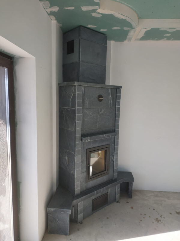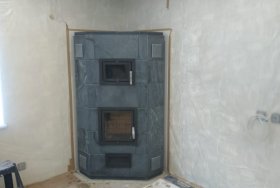Кинерма (угловая теплоемкая печь-камин с духовкой)