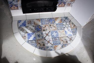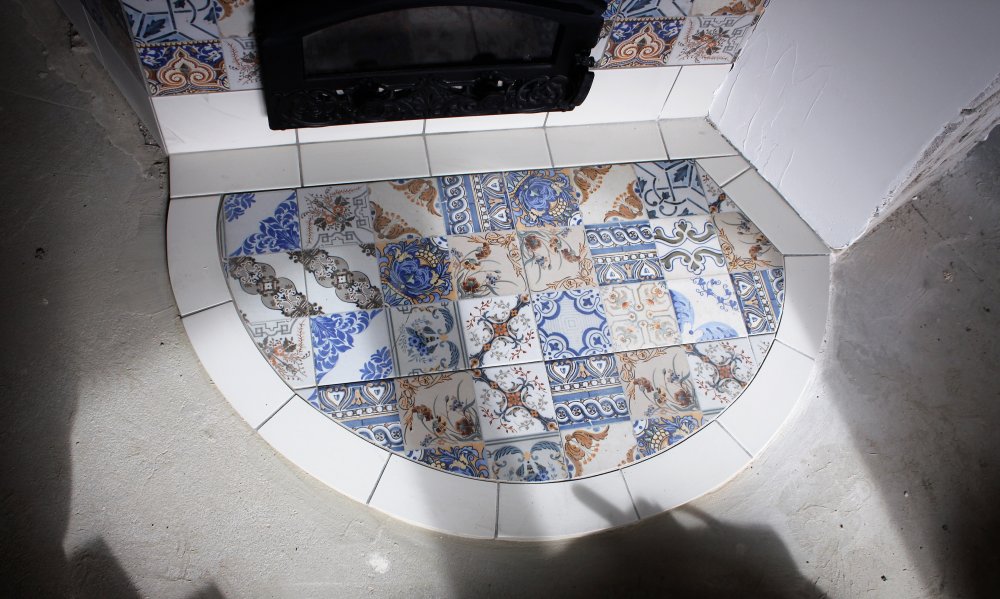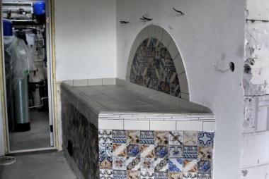 По другую сторону стены располагается лежанка, облицованная керамикой.