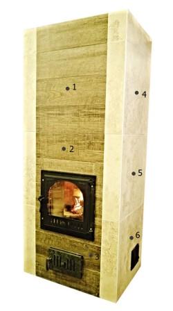 Конструктивно печь состоит из сердечника, собранного из огнеупорного кирпича, установленного на ребро, и наружной оболочки из огнеупорного кирпича, также установленного на ребро. Наружная оболочка облицована плитами из керамогранита.