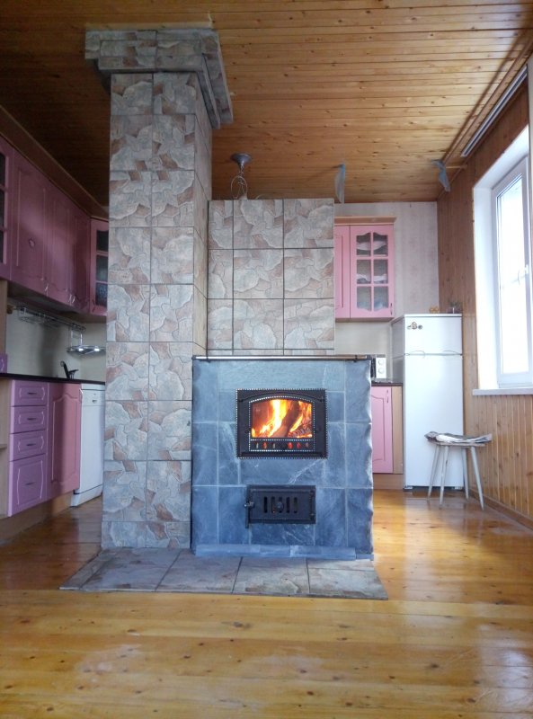 Таким образом один прибор сочитает в себе три : плита для приготовления пищи, отопительная печь и небольшой камин.