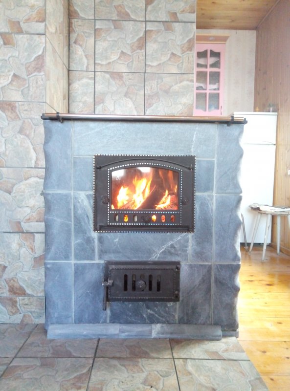 А через топочную дверцу со стеклом можно любоваться живым огнём.
