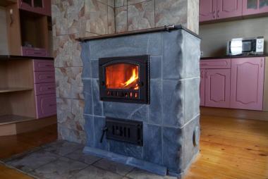 Печь имеет варочную поверхность с двумя конфорками, и подключена к отопительному теплоаккумулирующему щитку.